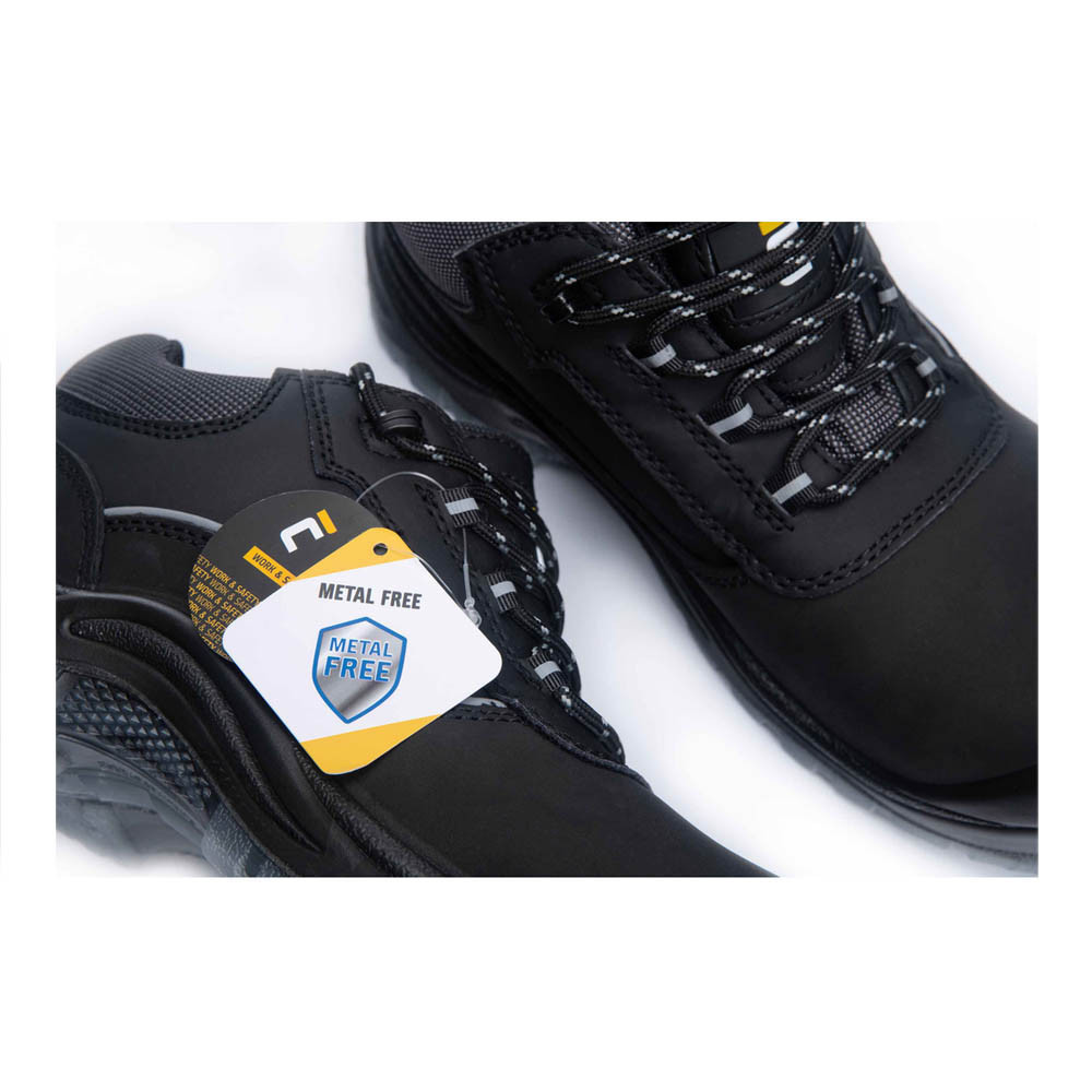 Munkavédelmi lábbeliben kompozit orrmerevítő van. A kompozit műanyag könnyebb acél társánál, a rossz hővezetésének köszönhetően télen sokkal lassabban hűl át. Ez a >200 J energiájú zuhanó tárgyaktól megvédi a lábujjakat. Sarka kiváló energiaelnyelő tulajdonságokkal rendelkezik. A cipő sarkában egy energiaelnyelő betét van. Dinamikus és pontszerű terhelés terheit elosztja, ezzel kímélve a sarokra jutó terhelést. A cipő talpában egy kompozit talpátszúrás elleni talplemez található. Hegyes tárgyak így a cipőn keresztül nem tudják megsérteni a lábfejet. Olajokat jól bírja, anyagának és mintázatának köszönhetően csúszásmentes. A cipő talpa az olajok és üzemanyagok károsító hatásának ellenáll.
