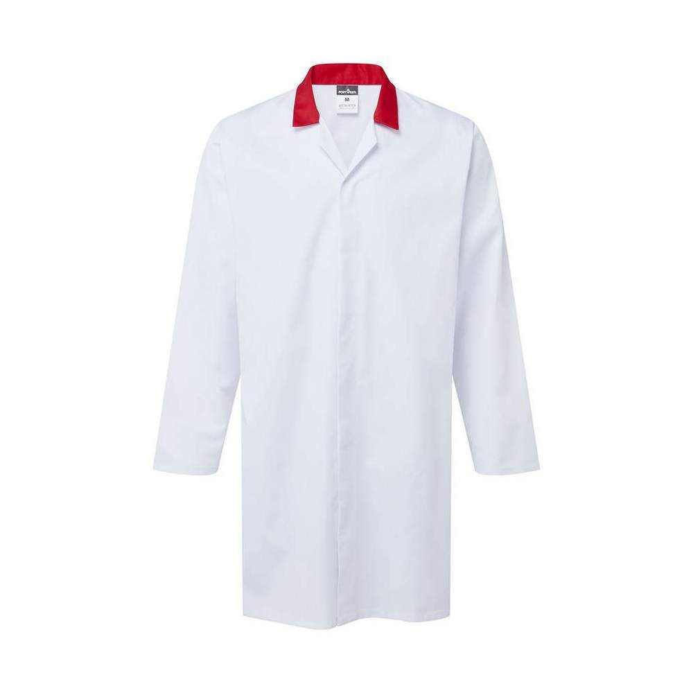 Élelmiszeripari köpeny zsebek nélkül leírása